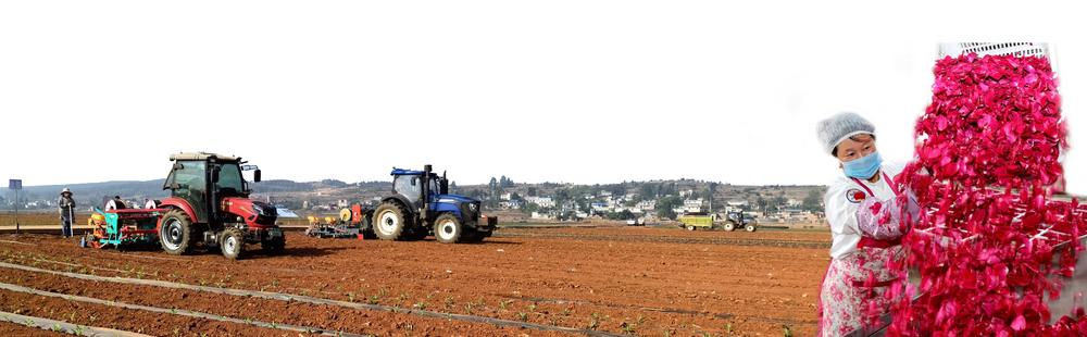 高标准农田里的机械化种植。 本报记者 张雯 摄 食用玫瑰初加工。 本报通讯员 尹永权 摄