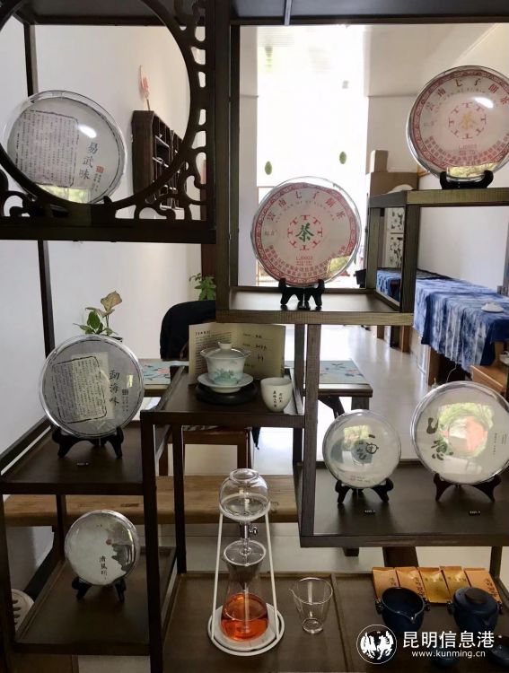 在茶室入口处摆放了一些中式木质展示柜,上面陈列着各式各样的普洱茶饼,除了农大新研制的GABA生普外,还有易武、勐海及七子饼茶等。沈远载轻快地走到木柜前,兴奋地介绍着茶室新研制的调味袋泡茶和挂耳茶,有馨香熟普、馨香生普、茉莉银针等。“在韩国,大多数人没有条件用茶具泡茶,而袋泡茶和挂耳茶更符合韩国市场的需求。”