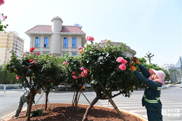 近期,各大短视频平台都被昆明绿化带中竞相开放、姹紫嫣红的树状月季刷了屏,引得外地网友纷纷留言“羡慕昆明人每天生活在花丛中!”“昆明的绿化带都像花园。”在大簇大簇树状月季怒放的背后,是昆明众多园林绿化工人们付出的辛勤努力。