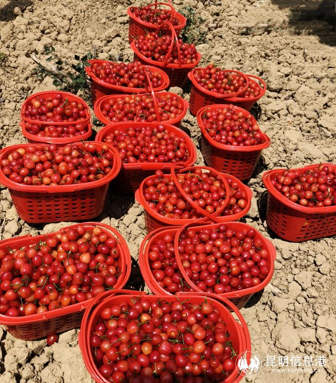 昆明信息港讯 记者杨雁 4月迎来樱桃成熟季,位于安宁市县街街道小红祥村127户农户房前屋后的600余亩樱桃陆续进入成熟期,鲜红的果实挂满枝头。该村近几年改良后种植的新品种红妃、红宝石等樱桃口味颇受群众喜欢,四面八方的游客纷纷前来入园采摘新鲜果实。