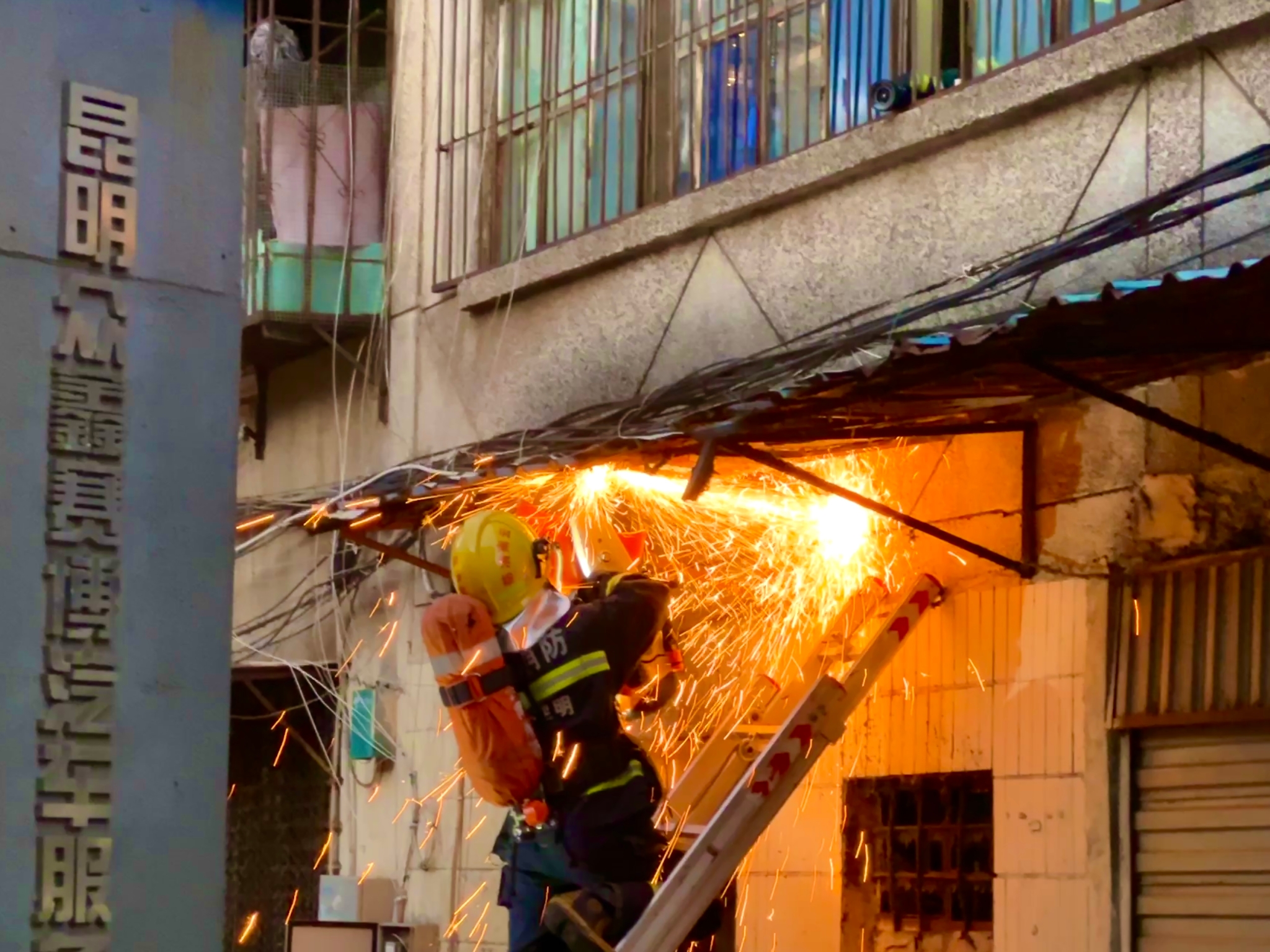 消防员正在实施救援