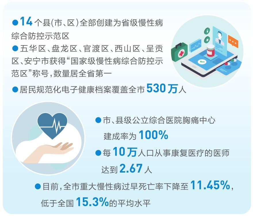近年来,昆明市把人民健康放在优先发展战略地位,加快建立制度体系,明晰慢病防治方向路径,全方位、全周期保障人民健康。