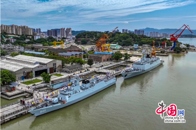 千年古港,百年船政,世纪星火;双拥明珠,英雄战舰,交相辉映。当日上午,靠泊在码头的两艘海军主力战舰格外威武雄壮。热情高涨的福州民众一大早就在马尾区中国船政文化城参观点前排起长长的队伍,只为现场领略海军战舰的雄姿。