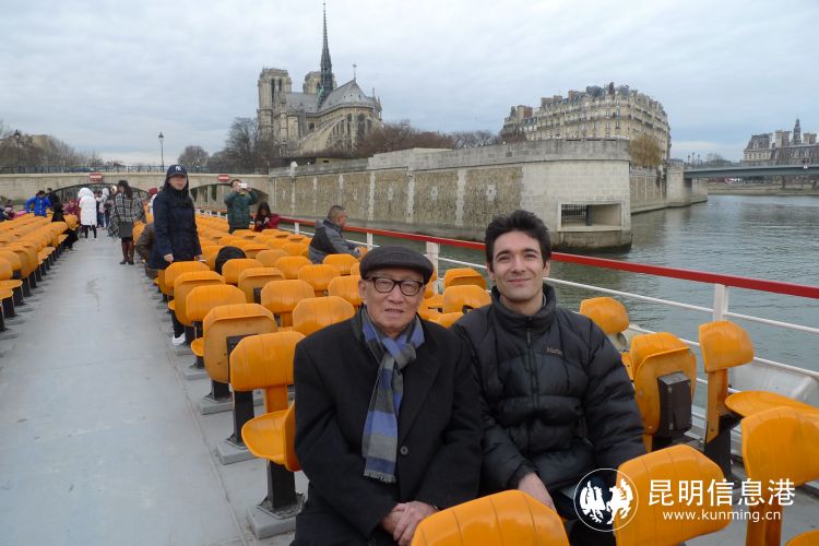 饶平如(左)与《平如美棠》法文版译者杜方绥(右)在塞纳河上