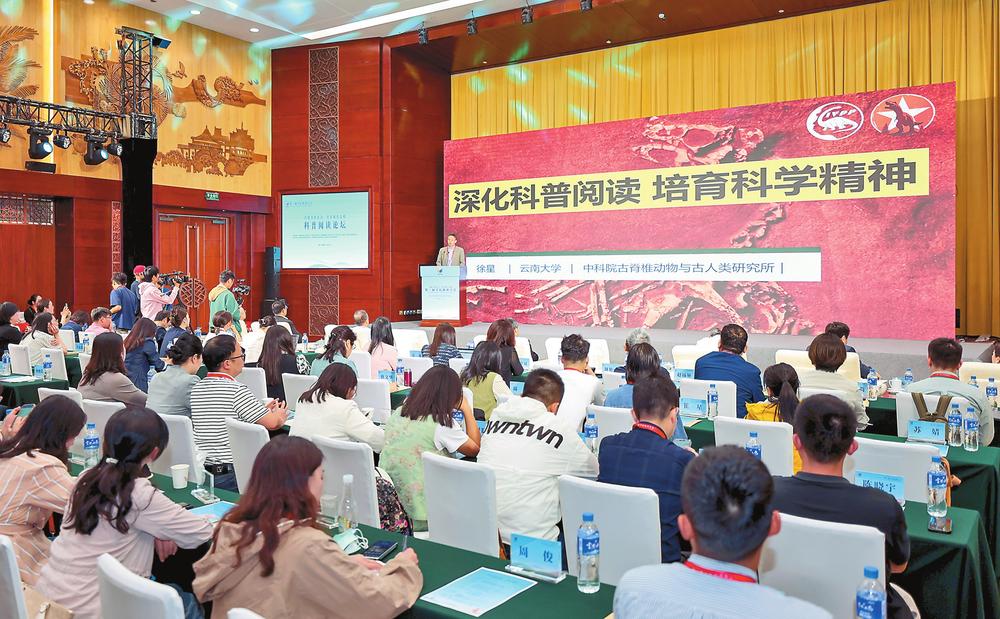 中国科学院院士、云南大学古生物研究院学术院长徐星作主旨报告。 本版图片均为本报记者 胡妤雅 见习记者 高吴双 摄