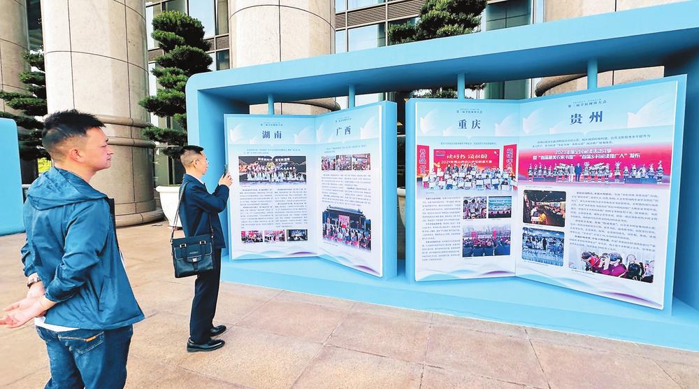十里书香长廊作为第三届全民阅读大会的重要板块,不仅展示了2018年以来中央宣传部(国家新闻出版署)评选出的50个全民阅读优秀项目,还设置了为本届全民阅读大会推出的2024版全民阅读地图,并在内容和展现形式方面进行全新升级。