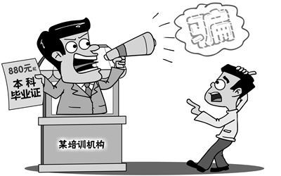 事实上,市场上一些教育培训机构开展的是非学历教育,为了吸引学生,在宣传时刻意夸大效果甚至是进行虚假宣传,实在不妥,必须对其加强监管和惩处。考生需要注意的是,如今教育信息和招生考试流程越来越透明。取得任何正规的大学文凭都要经过严格的报考流程和学习过程,不可能用钱来解决。在选择学校时,考生一定要通过教育部和当地教育部门指定的官方网站查询学校的相关信息。对于网络上一些诱人的招生宣传一定不能轻信,要仔细辨别真伪。