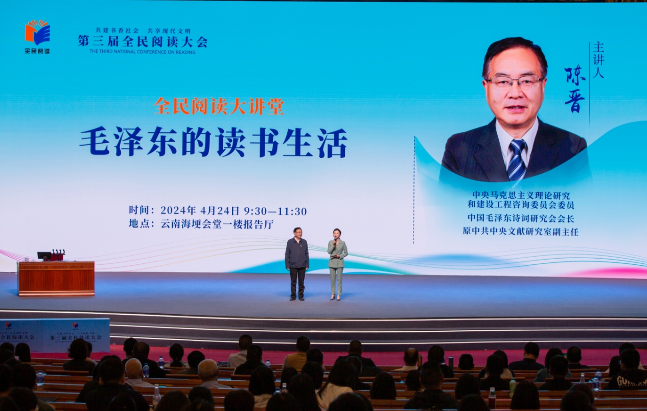 人间四月天,读书正当时。24日上午举行的首场讲座,中央马克思主义理论研究和建设工程咨询委员会委员、中国毛泽东诗词研究会会长、原中共中央文献研究室副主任陈晋带来题为《毛泽东的读书生活》的讲座,带领现场的读者一同走进毛泽东的读书生活。