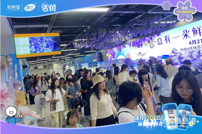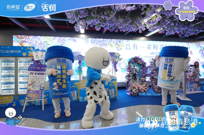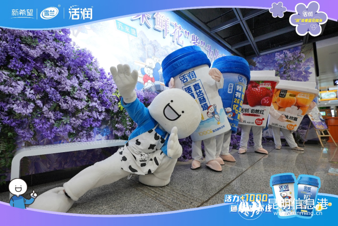 进苏家塘地铁站站厅,满眼浪漫的蓝花楹装饰格外吸引眼球。雪兰牛奶将蓝紫色的蓝花楹与旗下“蓝装”的活润酸奶相结合,在站厅打造了蓝花楹打卡墙、活润快闪店等装置,并为4号线列车特别定制“蓝花楹皮肤”,全方位营造“蓝花楹海”的沉浸体验。乘上满载蓝花楹装饰的4号线地铁,前往苏家塘地铁站,再“蓝”一杯健康好喝的雪兰活润酸奶……这一行程或将成为接下来诸多昆明消费者出行赏花的真实写照。