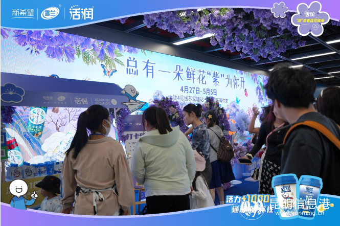 春末夏初的“花漾”昆明,是蓝花楹的浪漫给的。日前,“花漾生活·四季五华”第六届中国·昆明蓝花楹文化艺术节盛大举办,位于昆明市五华区教场中路的数百棵蓝花楹树热烈盛放。在赏花必经的苏家塘地铁站,新希望雪兰牛奶围绕活润酸奶,倾力打造好玩、好喝的沉浸式快闪互动,邀请消费者一起“润去看蓝花楹海”。