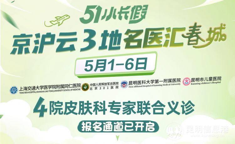 皮肤病病因繁杂、病情顽固,误诊率、复发率高,影响患者生活质量。面对皮肤健康问题,平日忙于工作、学习的大众能借助难得的五一假期看病,但目前多家医院均已发布假期专家门诊停诊公告,对于饱受皮肤顽疾困扰的患者来说,远赴外地一线城市求医不仅名医号位一号难求,还加重了时间成本和经济成本。为帮助广大省内皮肤病患者切实解决“有时间没专家、有专家没时间”的就诊难题,昆明皮肤病专科医院五一假日期间正常接诊,并将京沪名医请到了云南!