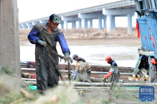 4月28日,渔民在山东省青岛市城阳区罗家营渔港卸网。新华社发(王海滨 摄)