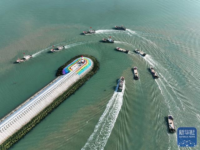 4月29日,在江苏省连云港市连岛中心渔港码头,渔船纷纷返港准备休渔(无人机照片)。新华社发(王春 摄)