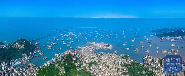 4月29日,在浙江省舟山市沈家门渔港,渔船归港(无人机照片)。新华社发(陈永建 摄)