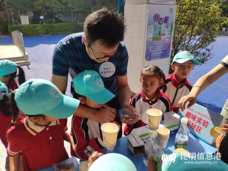 在小学老师的带领下,幼儿有序参观了新迎一小的教学楼、足球场、计算机室、环境、设施等,并随着老师脚步走进教室,感受了不一样的课堂氛围和学习方式,体验了小学开展的一系列丰富多彩的科技活动。活动中,幼儿参观了小学生自制的科技作品、各类生物标本,在科学组老师的带领下观看现场科学小实验,听科普讲解员进行科学小试验原理讲解,到户外体验重力过山车小实验。此外,还参观了科学老师现场进行的自制火箭发射实验展示、发射云朵、食用太空薯片等等精彩实验。一系列的活动让小朋友们不断发出惊呼和感叹声,每一个作品和科学实验都吸引着他们的好奇心和目光。
