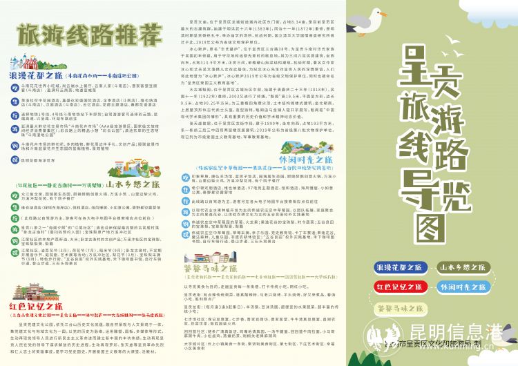 这条路线将带领游客重温呈贡的革命历史,领略呈贡的人文风情,在三台山党建文化公园缅怀革命先烈,在冰心默庐、张天虚故居探寻文学巨匠、革命作家的足迹,在大古城魁阁瞻仰中国社会学重要发源地,在呈贡文庙聆听历代学子的郎朗书音。
