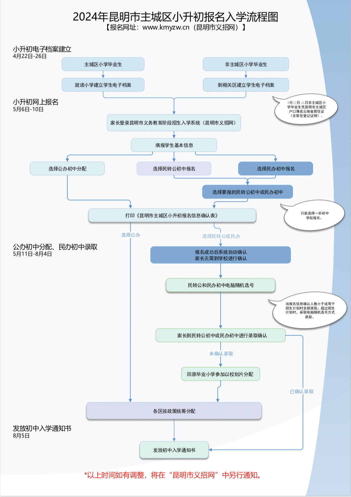 昆明信息港讯 记者上官艳君 4月30日,记者获悉,2024年昆明市主城区小升初报名工作将于5月6日0时-5月10日24时进行,请六年级学生家长做好准备。届时,请登录“昆明市义务教育阶段招生入学系统”(昆明市义招网,网址:www.kmyzw.cn)报名。