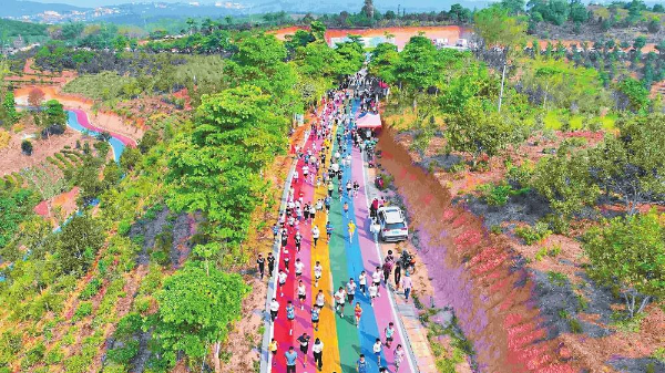 开幕式后,“万亩茶园杯”全民健身彩虹跑在茶园彩虹道上开跑。活动分体验组3公里、竞赛组8公里、精英组12公里,近千名参赛选手分批起跑,在你追我赶中享受茶园的美景和运动的快乐。