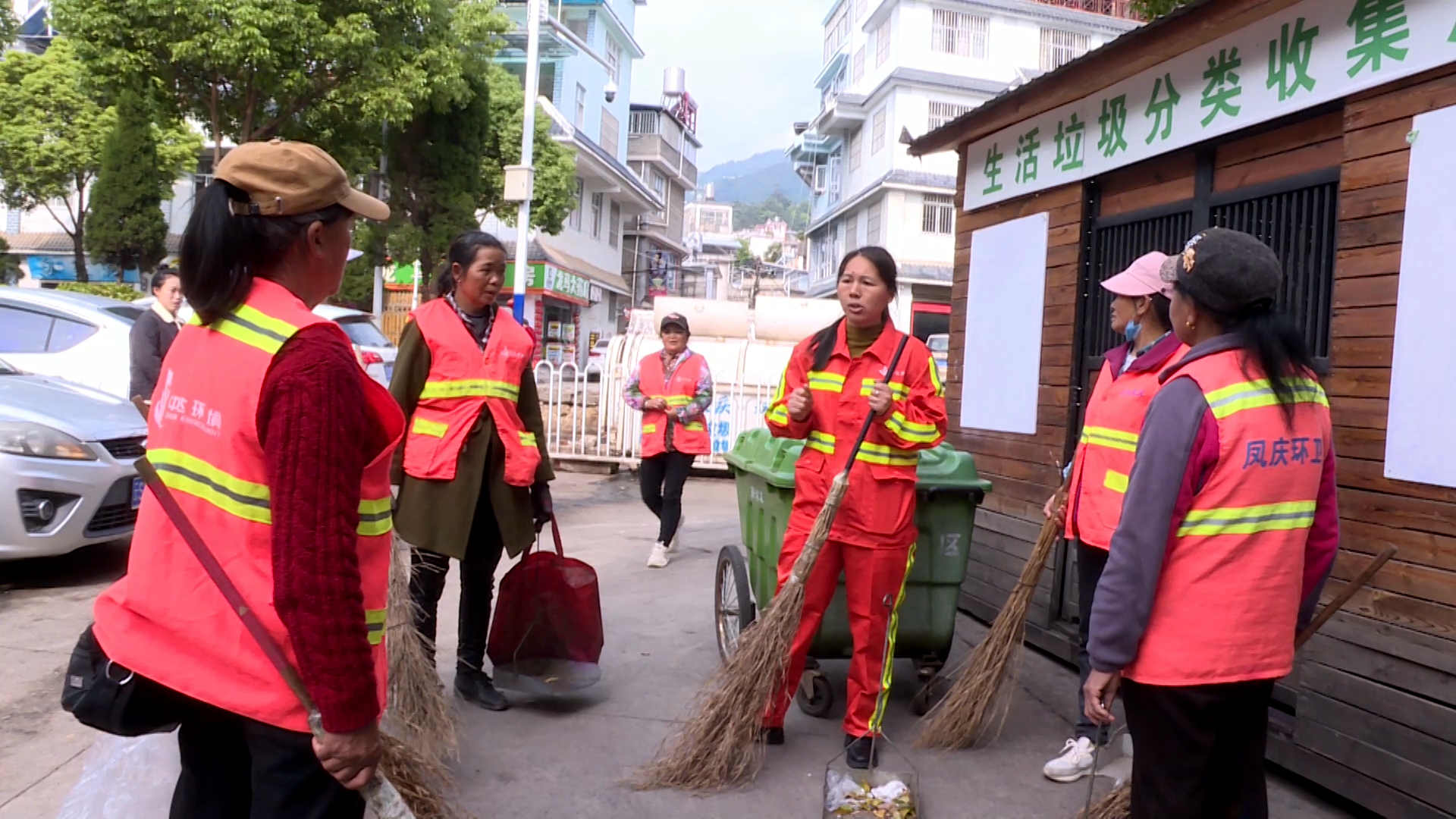 许秀红主要负责凤庆县城老城区的卫生带班清理工作,该区域由于人流密集、复杂,邻近学校、商铺众多,每天都需要面对大量的垃圾清理和复杂的环卫任务。每天晨会过后,她就带着其他环卫工人早早地来到片区,开始了一天繁忙的卫生清扫和保洁工作。她们不仅把责任区街道打扫得干干净净,还经常主动帮助路边的商家清理垃圾,受到了商家和市民的一致好评。