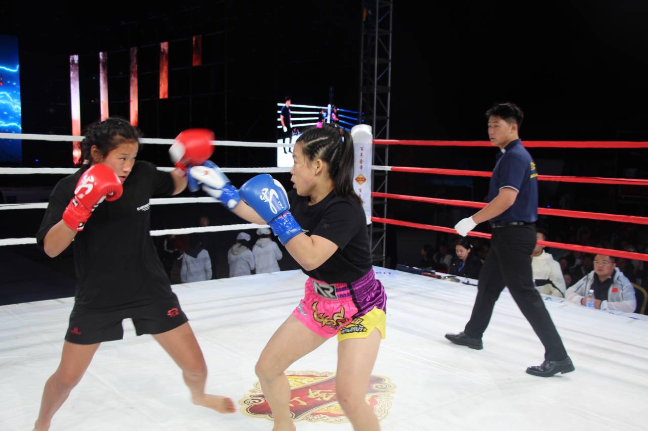 当晚,共举行了男女8组比赛。赛场上,各选手你一拳我一拳,挥拳如雨,拳脚相加,赛出风格、赛出水平。拳王挑战赛比赛前,还举行了精彩的武术表演。