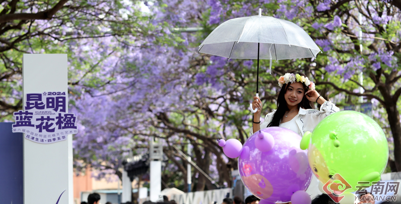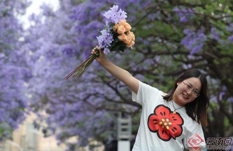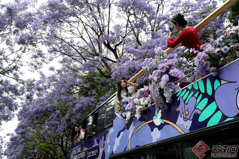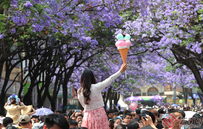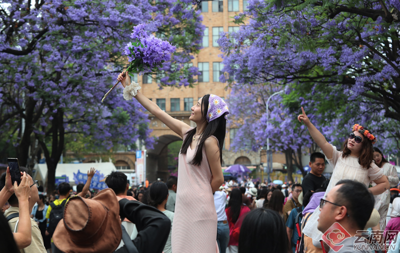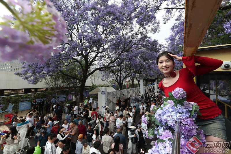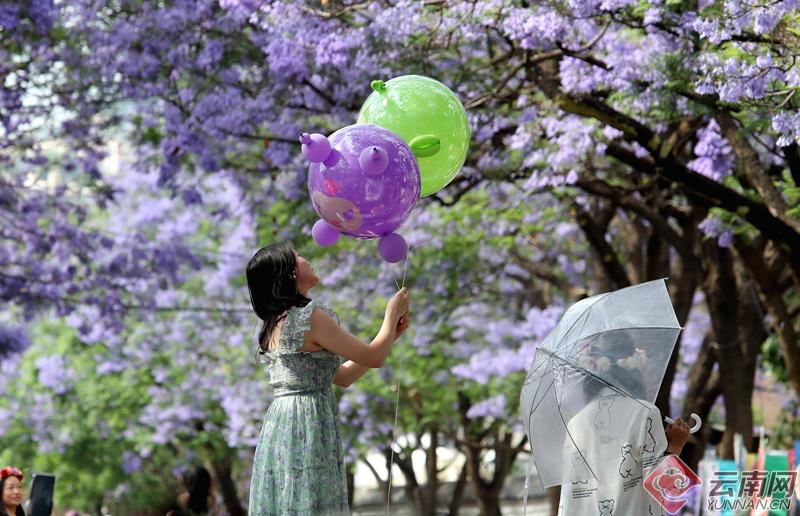 教场中路蓝花楹大道花海人潮,如梦如幻的蓝紫色引得八方游人纷至沓来,就像赶赴一场送别春天迎接夏日的盛宴,就为看着满城春色换做梦幻夏日,春城的春天圆满划上了句号,夏日的浪漫才刚刚开启。(云南网 记者杨峥 黄兴能 见习记者高吴双)