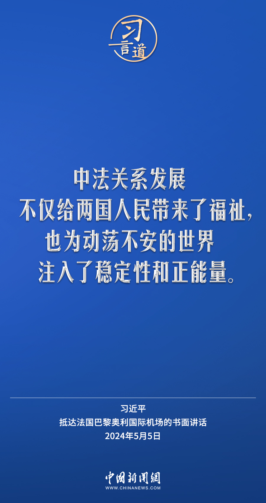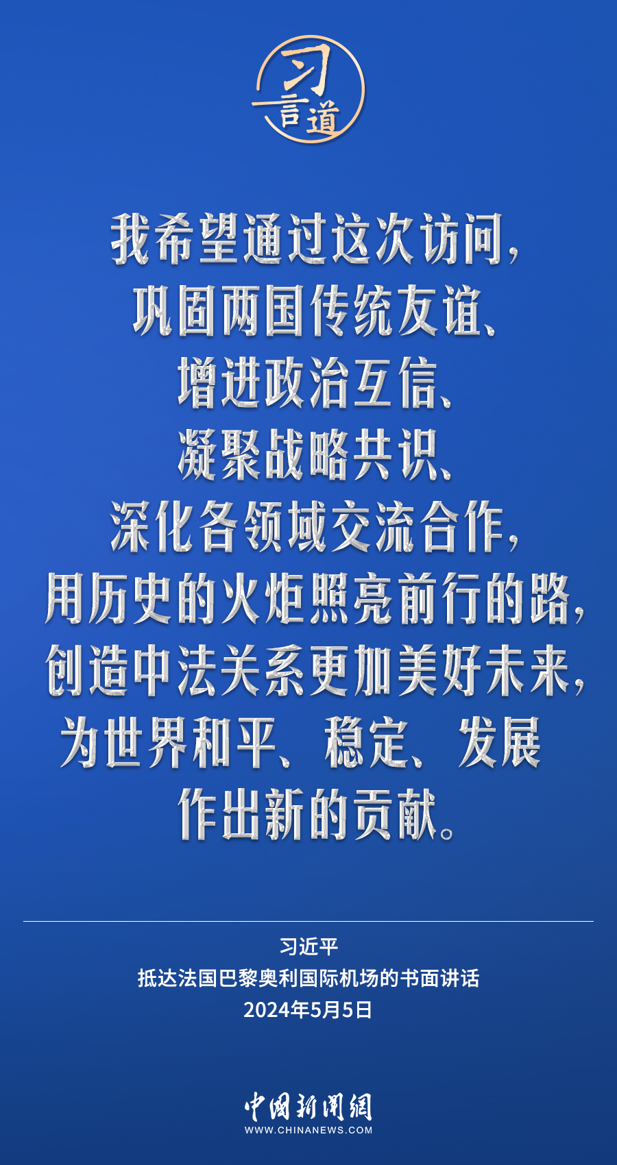 当地时间5月5日下午,国家主席习近平抵达巴黎,开始对法国进行国事访问。在抵达法国巴黎奥利国际机场的书面讲话中,习近平指出——
