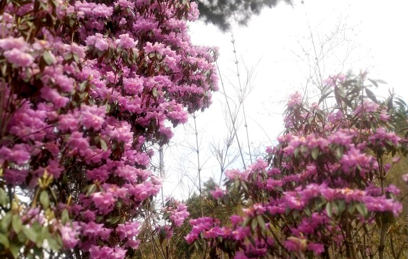 4月底以来,香格里拉杜鹃花进入盛开期。在虎跳峡镇红旗村至小中甸镇的国道214线沿线,漫山遍野的杜鹃花把一座座山头装扮得如诗如画,让人流连忘返。(记者马建军 摄影报道)