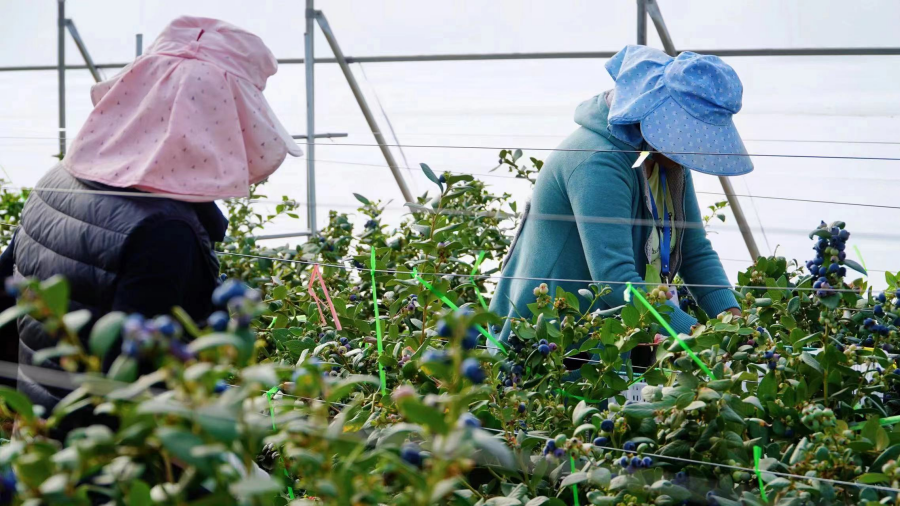 玉龙县大具乡蓝莓基地的务工人员(资料图)。供图