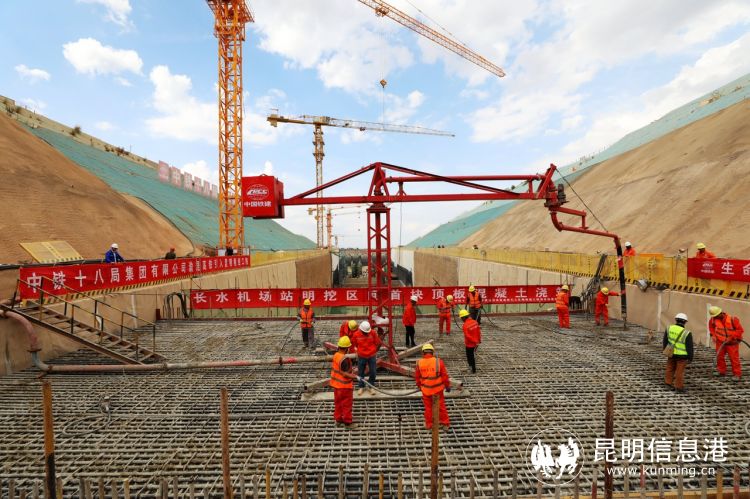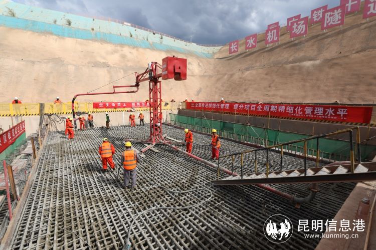 渝昆高铁长水机场站明挖区间首块顶板完成浇筑。通讯员李何 胡义 刘书峰 供图