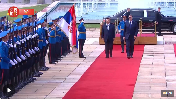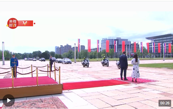 5月的贝尔格莱德,阳光明媚。塞尔维亚大厦前,中塞两国国旗迎风飘扬,仪仗队威武雄壮。习近平和夫人彭丽媛乘车抵达时,塞尔维亚总统武契奇和夫人塔玛拉在下车处热情迎接。