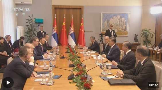 当地时间5月8日上午,国家主席习近平在贝尔格莱德塞尔维亚大厦同塞尔维亚总统武契奇举行会谈。两国元首宣布,深化和提升中塞全面战略伙伴关系,构建新时代中塞命运共同体。