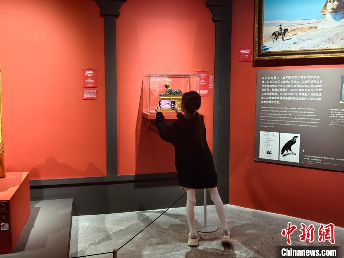 4月13日,一名中国小朋友用手机拍摄保护罩内的文物。苏婧欣摄