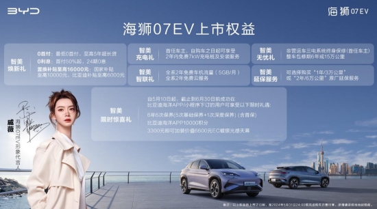 即日起,订购海狮07EV可享0首付0利息、置换补贴至高16000元、全系2年免费车机流量(5GB/月)等多重丰厚福利。截至6月30日前,成功在比亚迪海洋APP/小程序下订的用户,可享受6年6次保养、比亚迪海洋APP10000积分等限时惊喜礼!