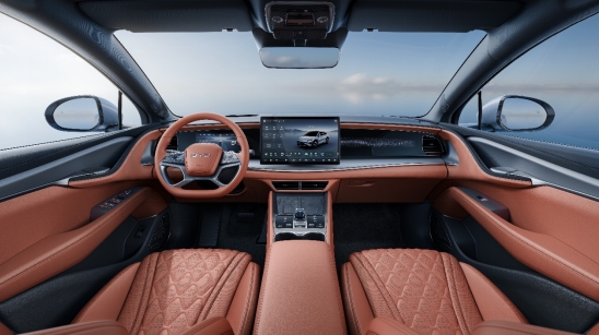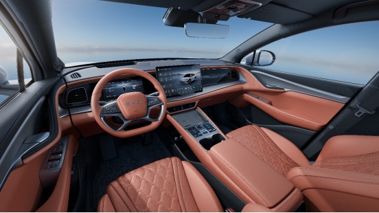 海狮07EV的内饰设计简洁实用,富有个性,优美的曲线与丰富的海洋元素打造出座舱的“悬浮、轻量、速度感”。“海洋之芯”中控布局搭配“悬浮之翼”仪表台,营造出自然雅致之感,平底四辐运动方向盘、复古式三角窗等设计,彰显出不凡的品质感与优雅的高级感。