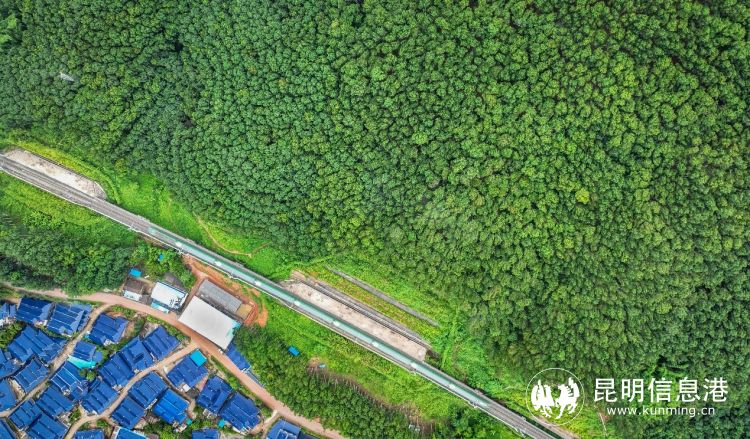 穿过大片天然橡胶林后,傣家屋顶崭新的深蓝色琉璃瓦片闪烁着金光、村里的一草一木显得生机勃勃,中老铁路穿寨而过。