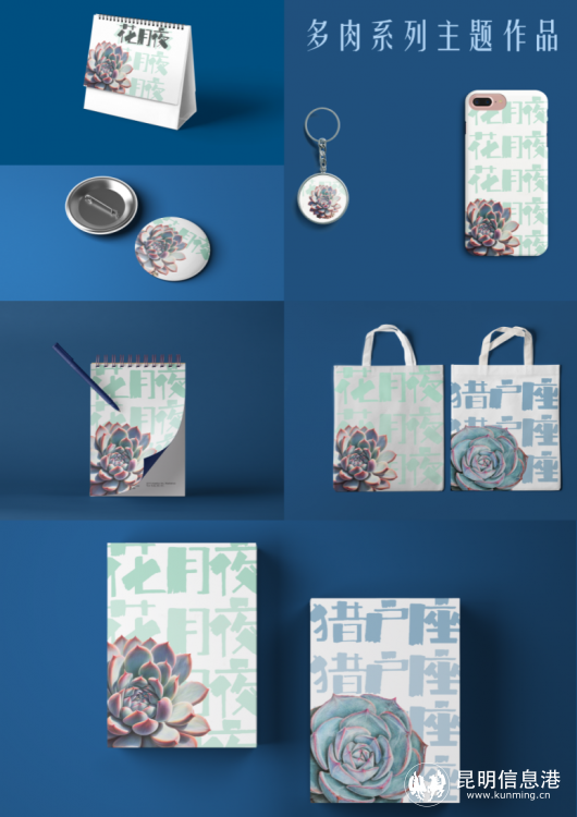 昆明学院学生郑天昊的多肉植物主题文创产品,创作出了包装纸袋、咖啡杯、便签、礼盒包装、笔记本等实用性强的作品。通过多肉植物文创产品传播环保意识,吸引更多的人关注自然之美,感受绿色生活的美好。