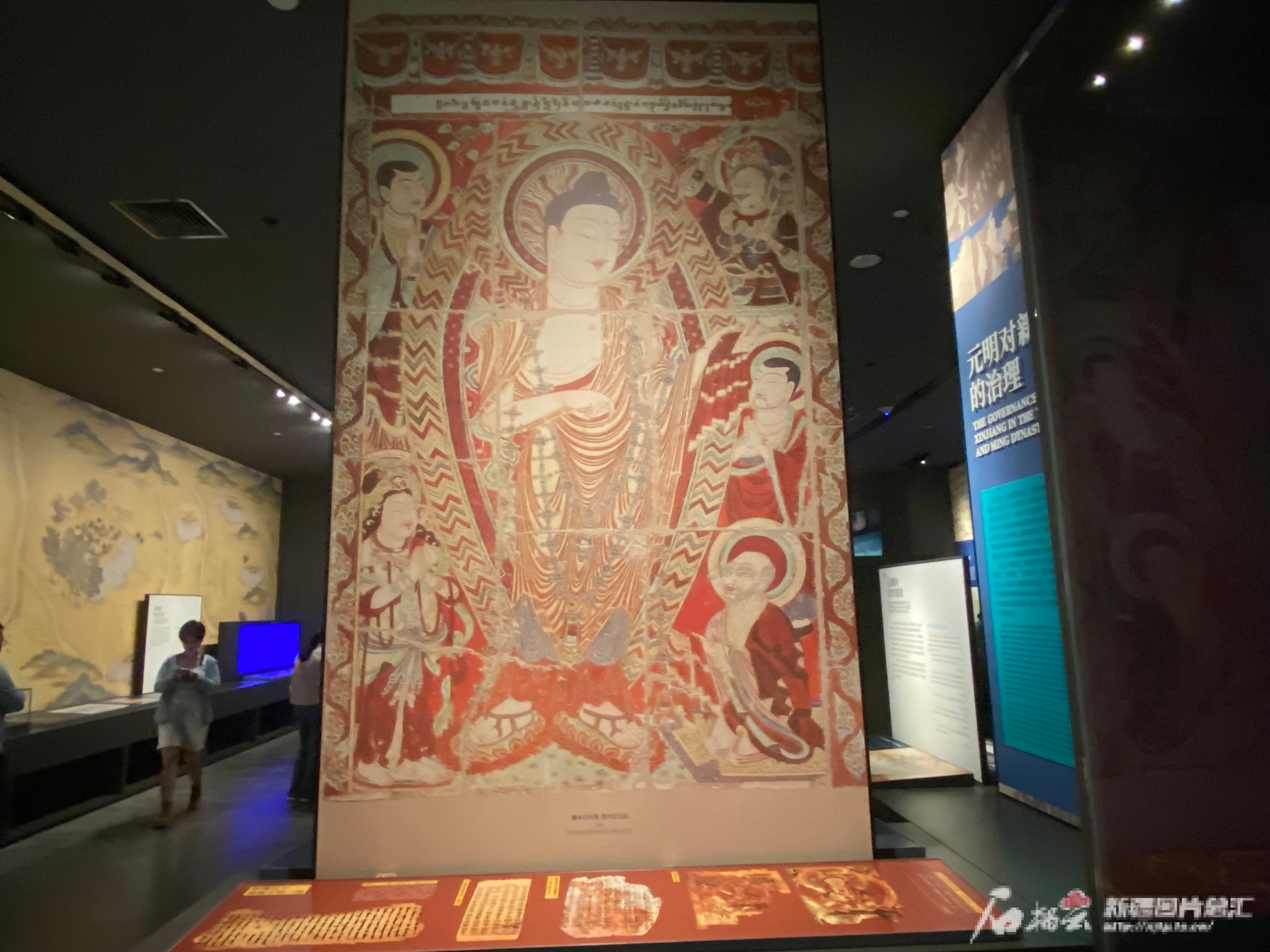 陈列于新疆博物馆展厅中的柏孜克里克千佛洞遗址第20窟壁画图片形象。天山网-新疆日报记者 赵梅摄