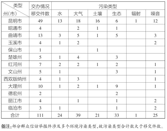 云南省中央生态环境保护督察群众来信来电举报污染类型统计表(第十三批)