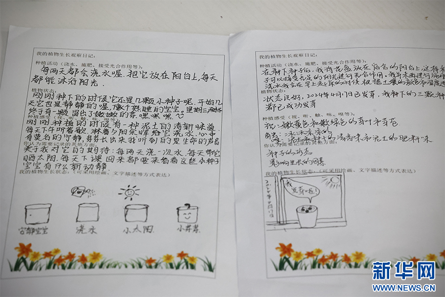 学生记录下植物生长情况(5月23日摄)。新华网 刘云 摄