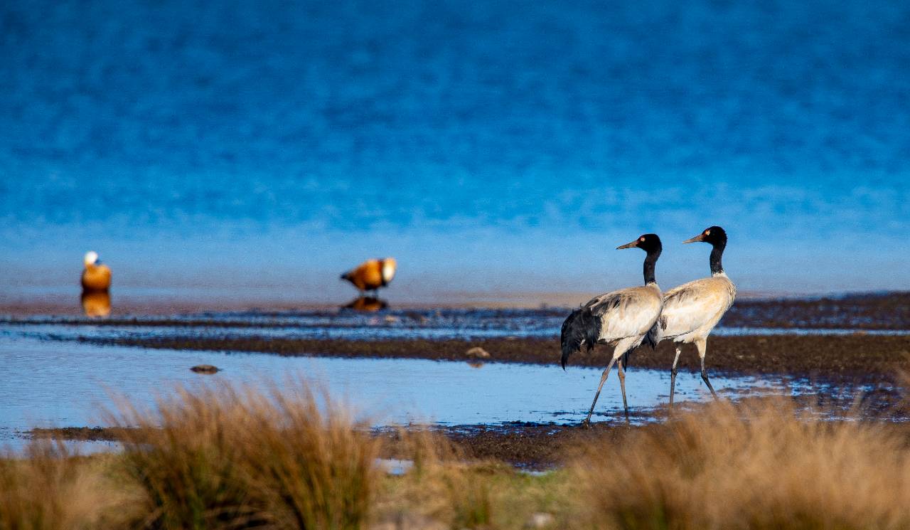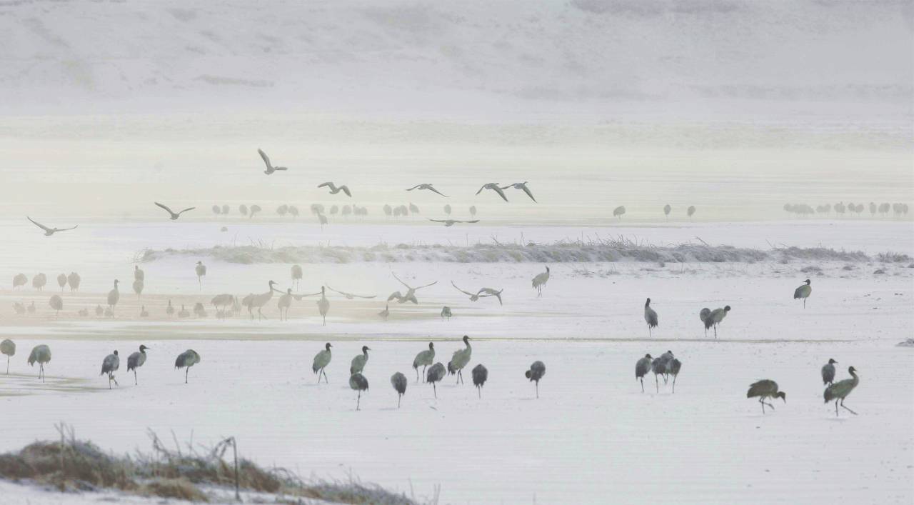 冬日里的大山包,是一个粉雕玉琢的“冰雪世界”,是一幅黑颈鹤与冰雪交相辉映的写意水墨画,亦是一幅清新、灵动的蓝色调写实油画,惊艳温柔了多少时光。
