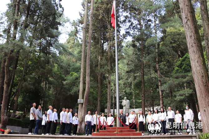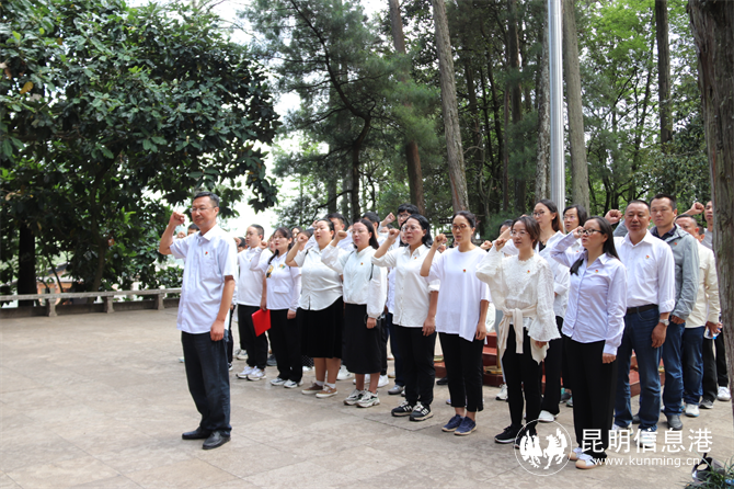 清晨,41名党员怀着敬仰之情,前往西山森林公园景区聂耳墓。墓地周围绿树成荫,大家身着白衬衣,胸佩党徽列队,在昆明市博物馆党支部副书记张俊杰领誓下,举起右拳重温入党誓词。仪式结束后,全体党员庄重肃立,面向国旗,在伴乐下共同演唱《义勇军进行曲》。