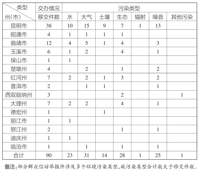 云南省中央生态环境保护督察群众来信来电举报污染类型统计表(第二十五批)