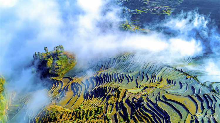 如等高线般的梯田,从山脚延伸至海拔2000多米的山巅,级数最多达3700多级,被誉为“中国最美的山岭雕刻”。