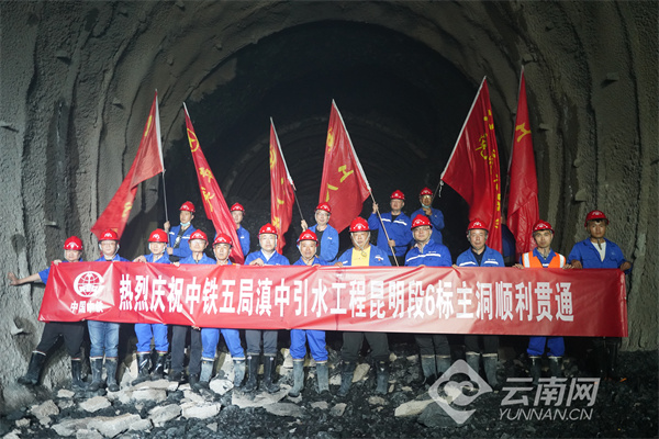 滇中引水昆明段主要工程为昆呈隧洞,隧洞全长105公里,为全线第一长隧,是全国目前在建水利引水隧洞第一长隧洞。中铁五局承建的滇中引水昆明段施工6标项目位于昆明市经开区和呈贡区境内,地处城乡接合部,标段主洞全长17.246千米,设4条施工支洞,支洞总长2951米,其中8号、10号施工支洞为平洞(无轨运输),9号、11号施工支洞为斜井(有轨运输)。自进场以来,滇中引水6标项目团队在业主及相关单位、公司党委、公司的正确领导下,团结向上,先后克服突泥、涌水、涉铁暂停施工、下穿复杂地质及重要建筑物等困难,充分发扬“开路先锋”精神,以严谨、务实、高效的工作保证全隧安全、顺利贯通。