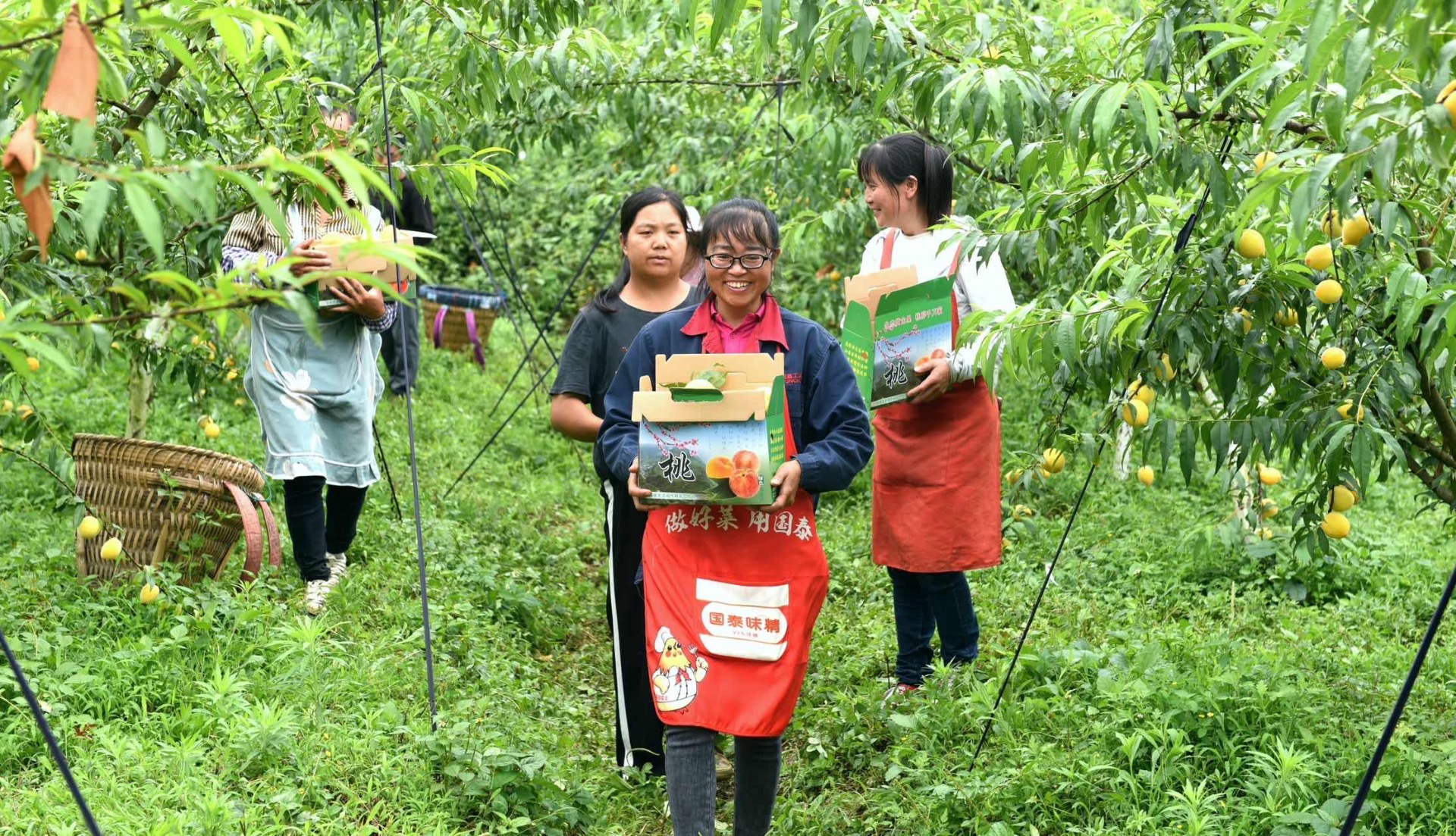 “我们在这里上班,照顾家庭的同时还能赚到钱,一个月还是有几千块钱的收入,我感觉是很好的。”看着眼前的果实,正在采桃的村民不禁喜笑颜开。桃园除了每天需要的固定劳动力外,在6月至10月桃子成熟期,还有效带动了周边群众实现了“家门口就业”,成为周边乡村群众致富增收“金饭碗”。