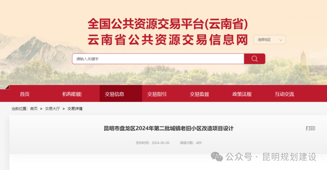 6月6日,昆明市盘龙区城市更新改造局在云南省公共资源交易信息网发布了“昆明市盘龙区2024年第二批城镇老旧小区改造项目设计”公告。
