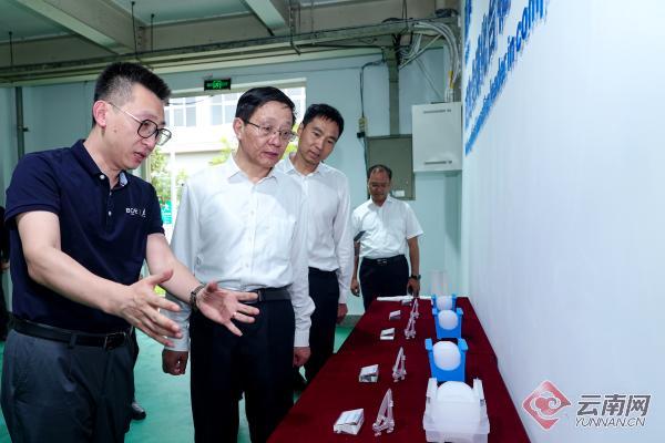 王予波在云南蓝晶科技有限公司观看企业产品展示。记者 胡妤雅 摄
