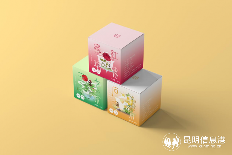 参赛者们围绕云南丰富的资源优势展开创作。来自湖北省武汉市文华学院的洪菁菁将呈贡的自然风光和茶文化融入包装设计中,通过视觉元素传达出云南茶叶的独特魅力。她采用简约而优雅的设计风格,分别以玫红,黄,为主色调,结合云南的特色元素如山水、玫瑰、茶树等进行图案设计,既体现了云南的自然之美,又展现了茶叶的高雅品质。