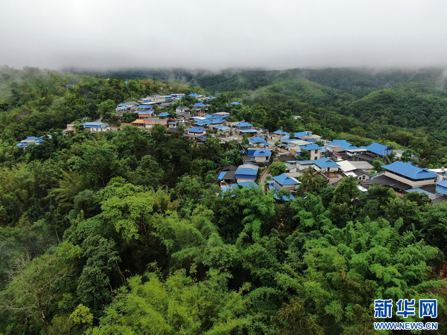 6月16日,森林环抱的云南省景洪市基诺山基诺族乡新司土村委会么卓村小组(无人机照片)。