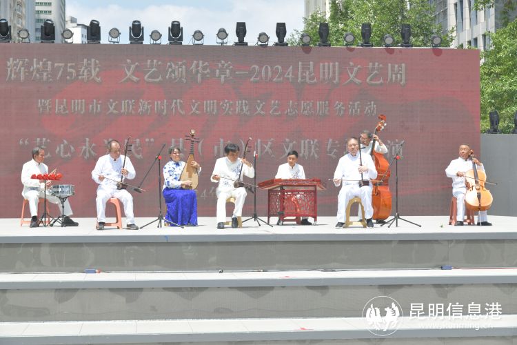 昆明信息港讯 记者王奕然 6月21日,“辉煌75载 文艺颂华章” 2024昆明文艺周暨昆明市文联新时代文明实践志愿服务活动“艺心永为民”县(市)区文联专场展演在南屏步行街广场举行。此次演出由昆明市14个县(市)区基层文联选送,以丰富多彩的文艺节目为现场观众们献上了一场独具特色的视听盛宴。